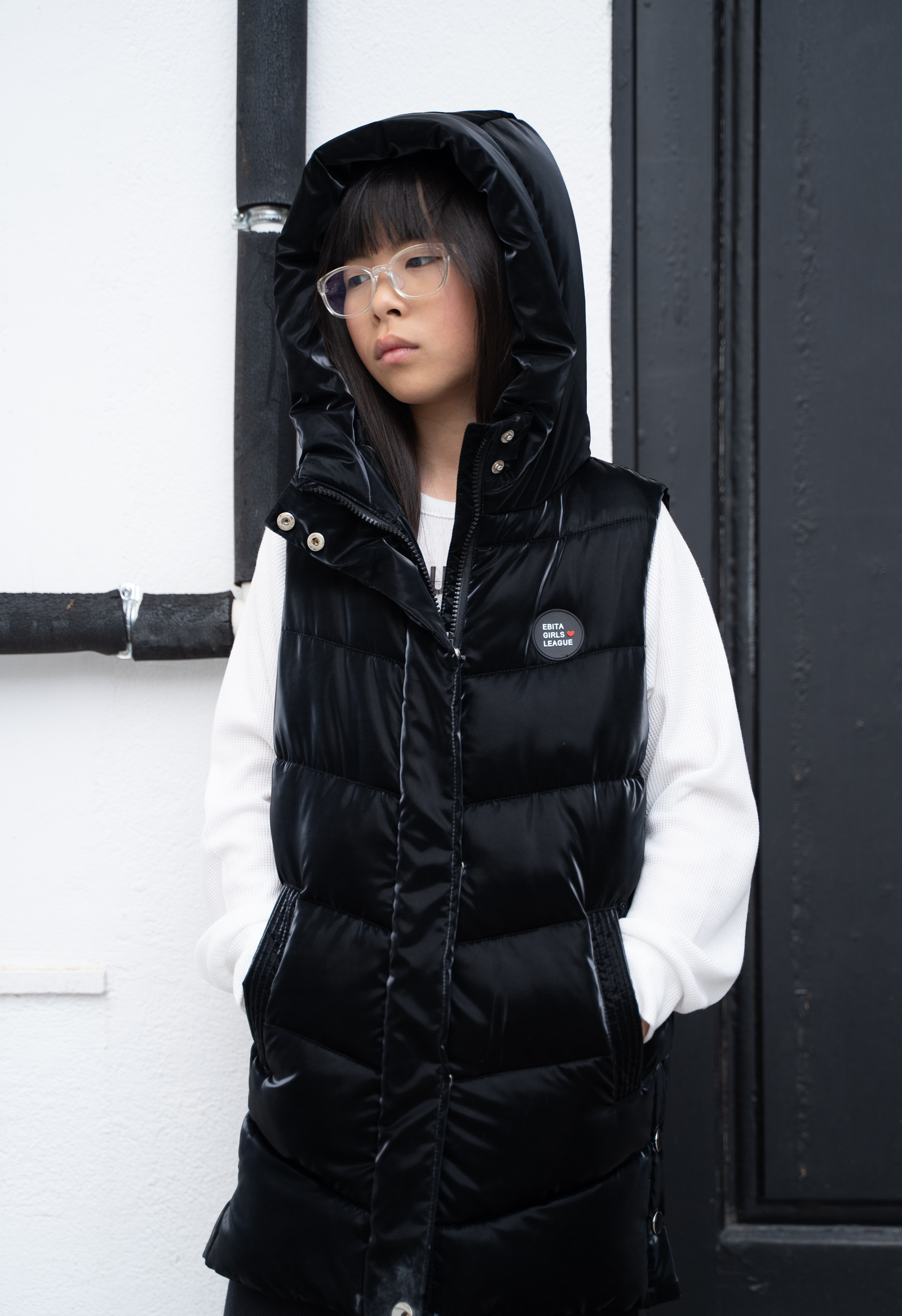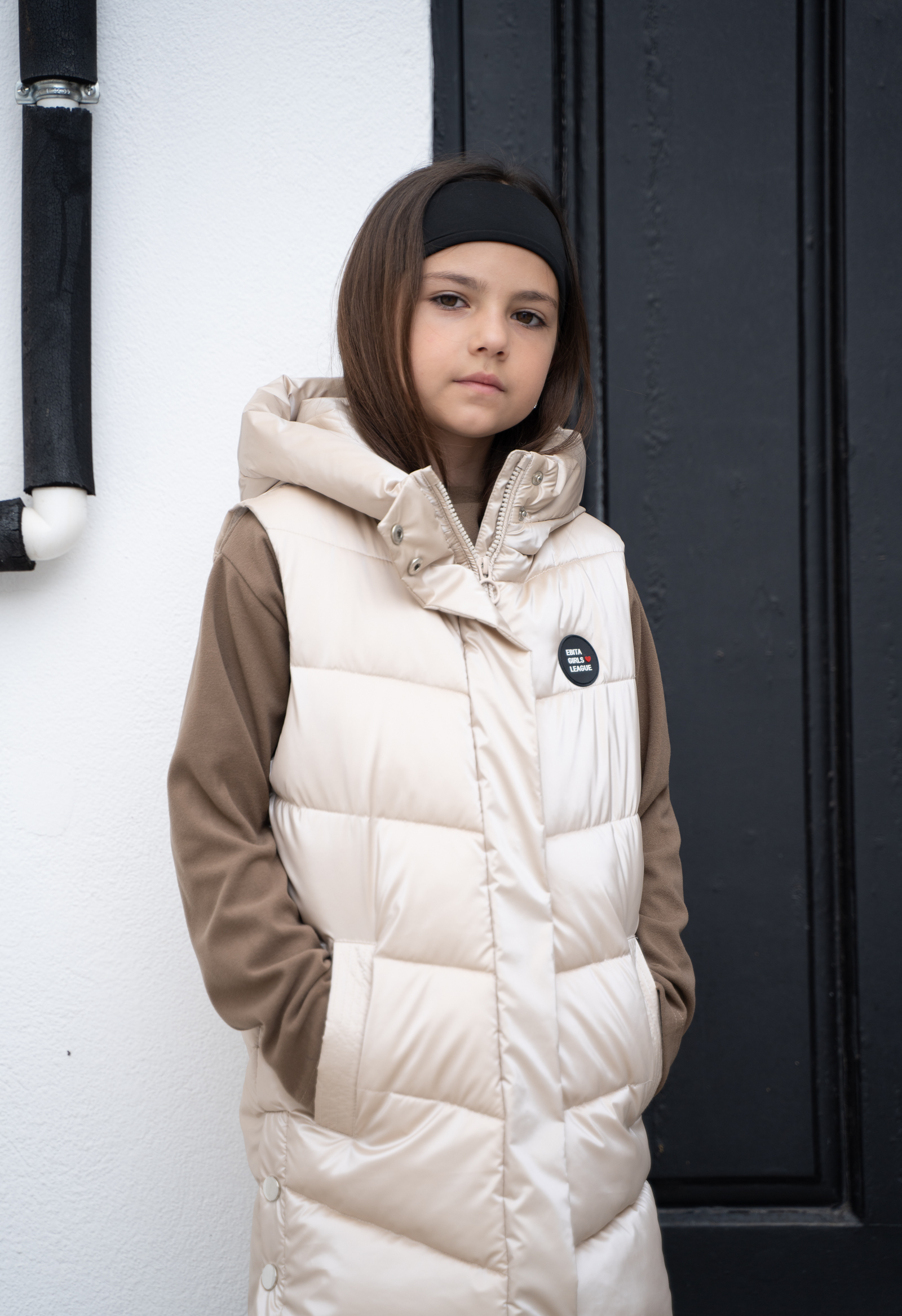 Αμάνικο γιλέκο με ενσωματωμένη κουκούλα κορίτσι Εβίτα