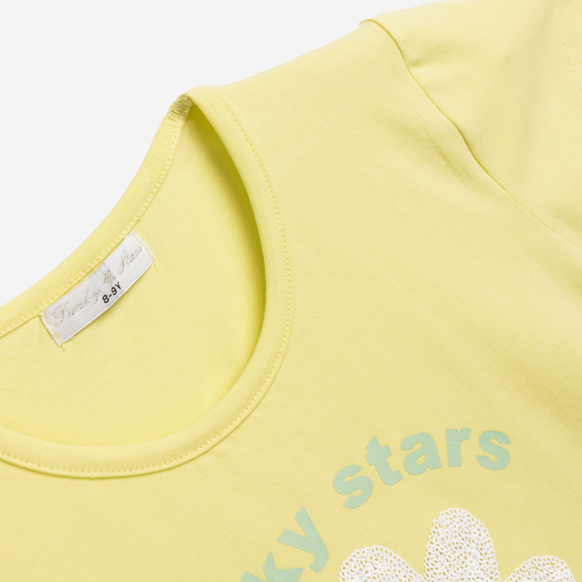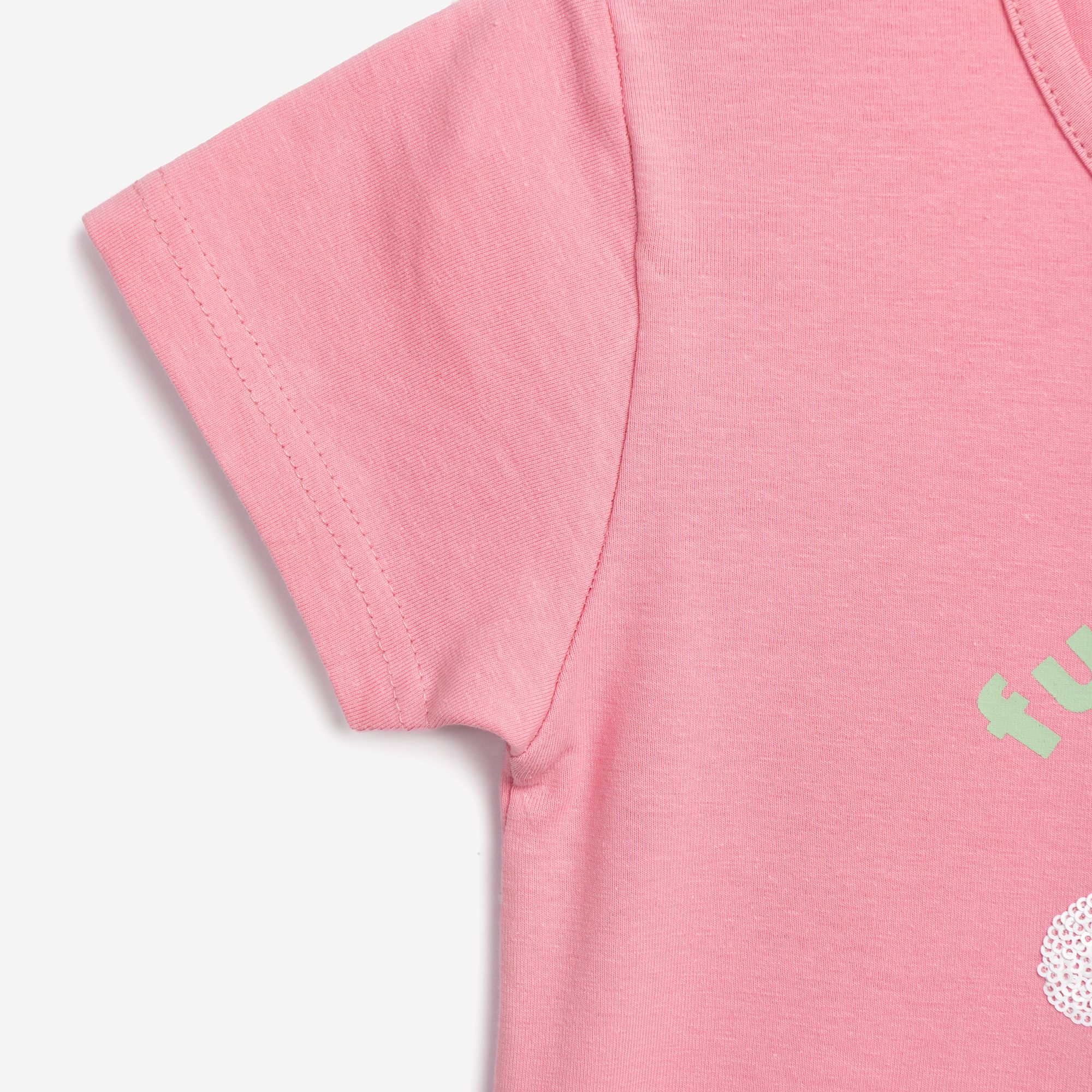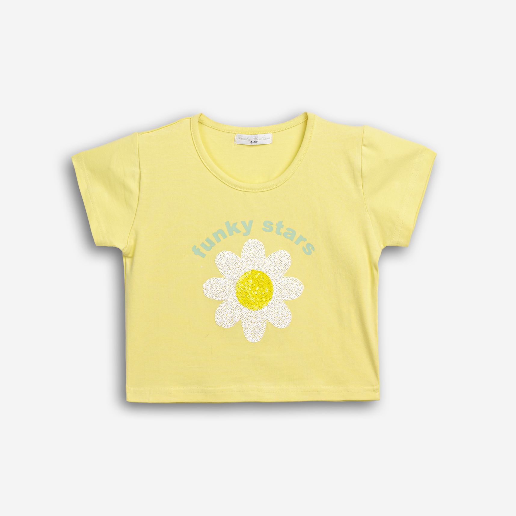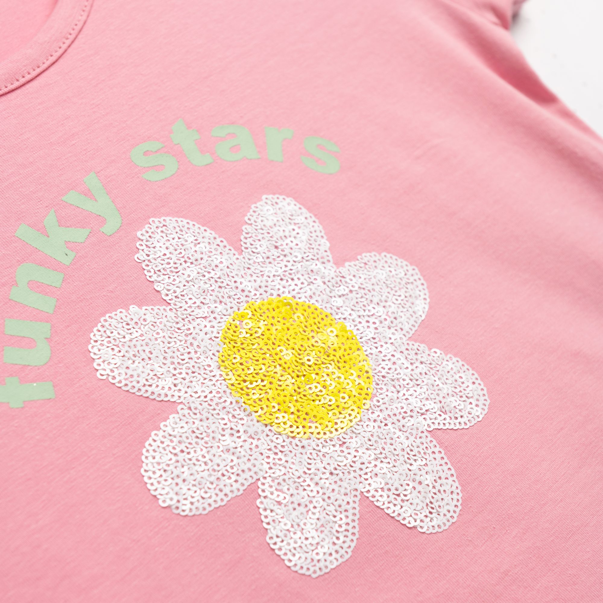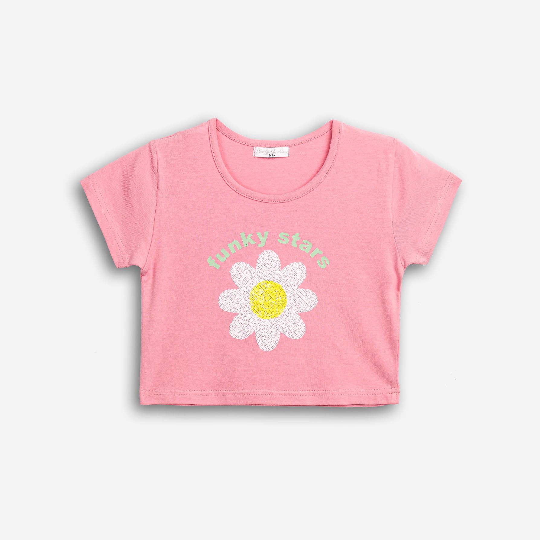 - Μπλούζα κοντομάνικη κάλτσα λύκρα με τύπωμα (χαμομήλι) σε χρώμα ρόζ