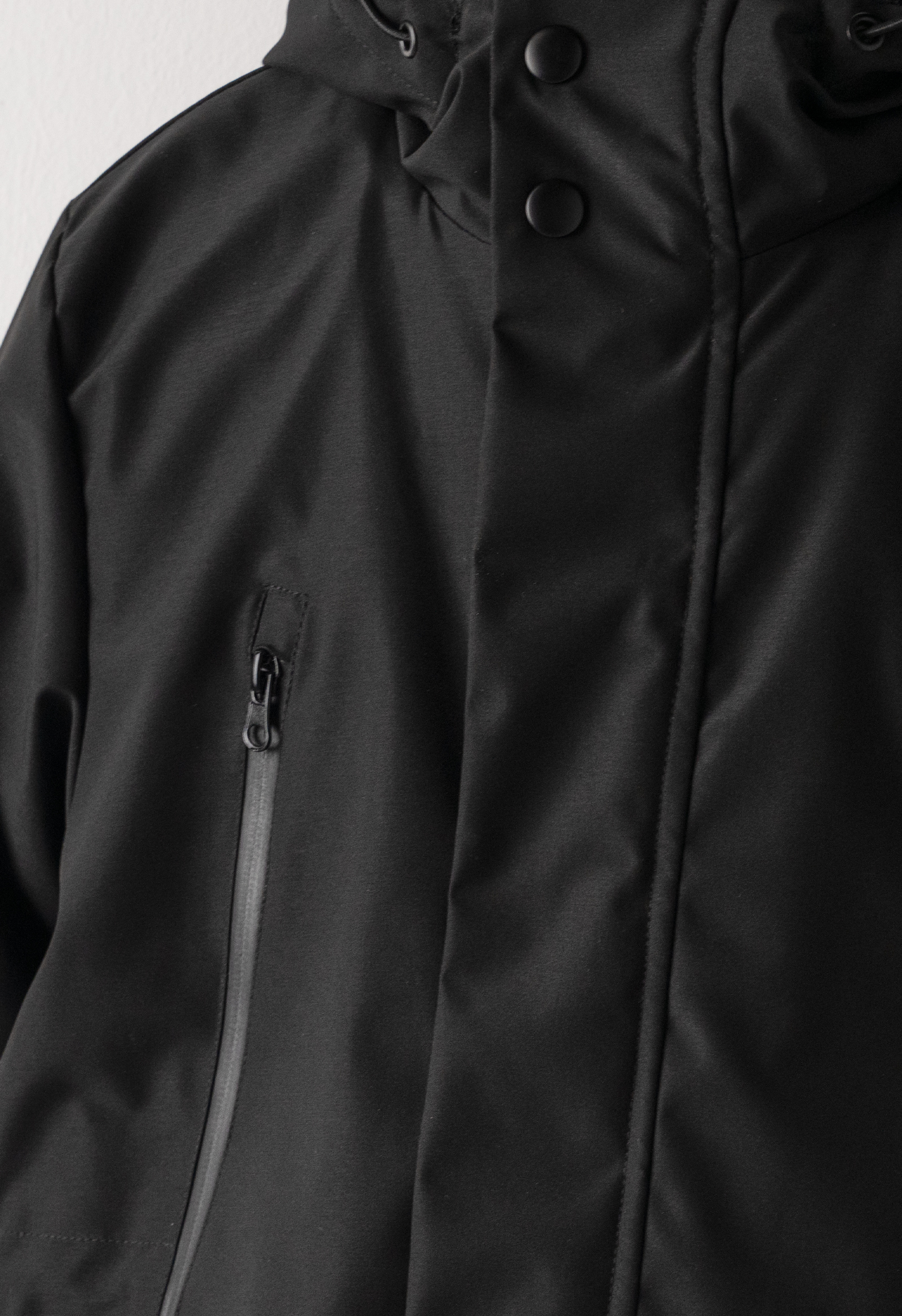 - Μακρύ μπουφάν με επένδυση και ενσωματωμένη κουκούλα