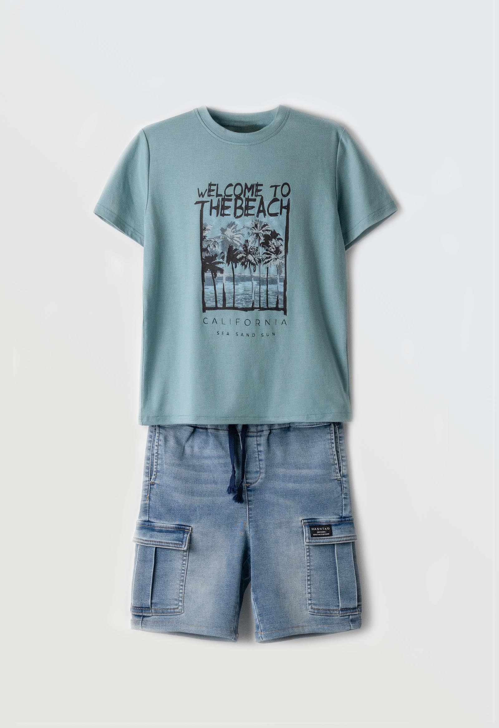 Σετ αγόρι τζiν σορτς cargo Hashtag