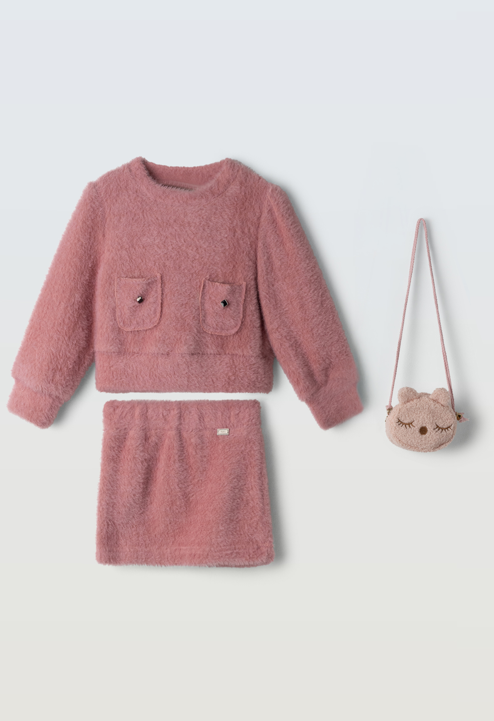Σετ γούνινο με φούστα ροζ κορίτσι Εβίτα