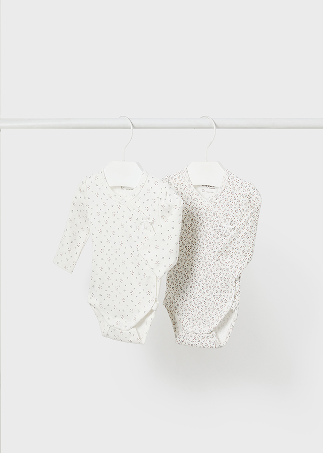 • 2 τεμάχια μακρυμάνικα ζιπουνάκι με σχέδιο λουλούδια. Ιδανικό για τις πρώτες μέρες του μωρού σας!