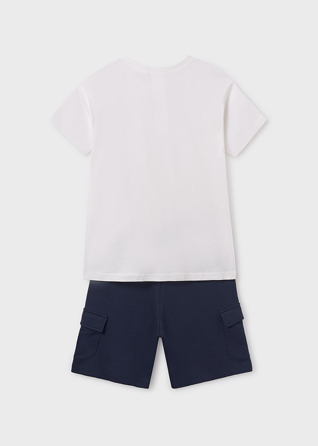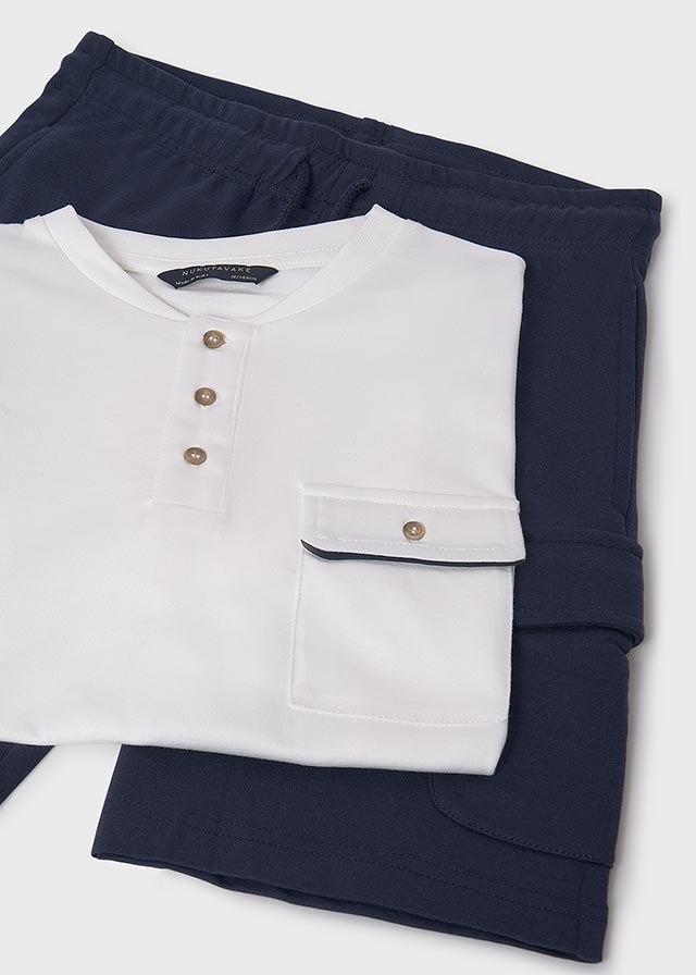 - Σετ με μακό cargo βερμούδα με λάστιχο στη μέση και κοντομάνικη μπλούζα με κουμπιά