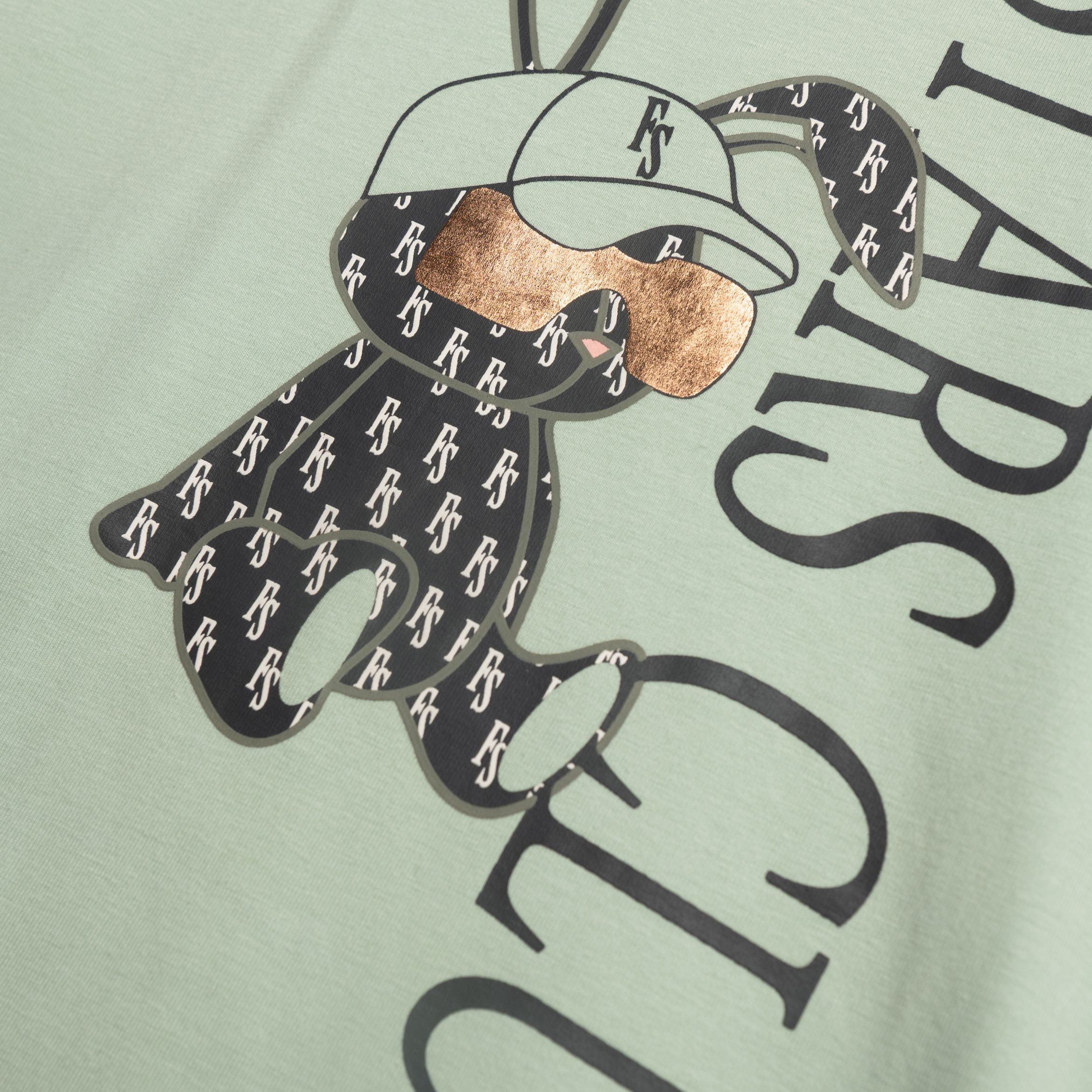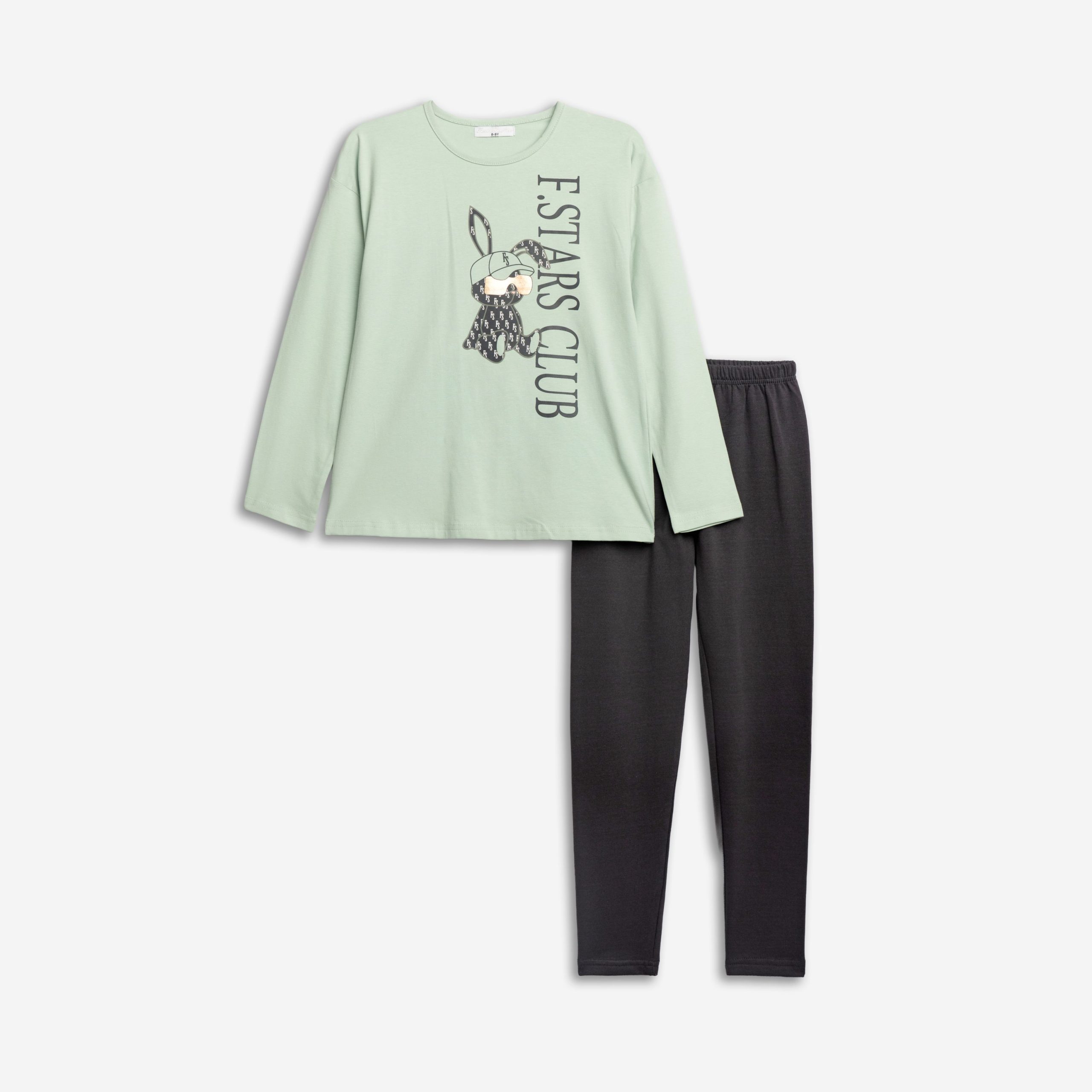 - Σετ μπλουζοφόρεμα φούτερ με τύπωμα κουνελάκι και κολάν κάλτσα λύκρα με τύπωμα allover