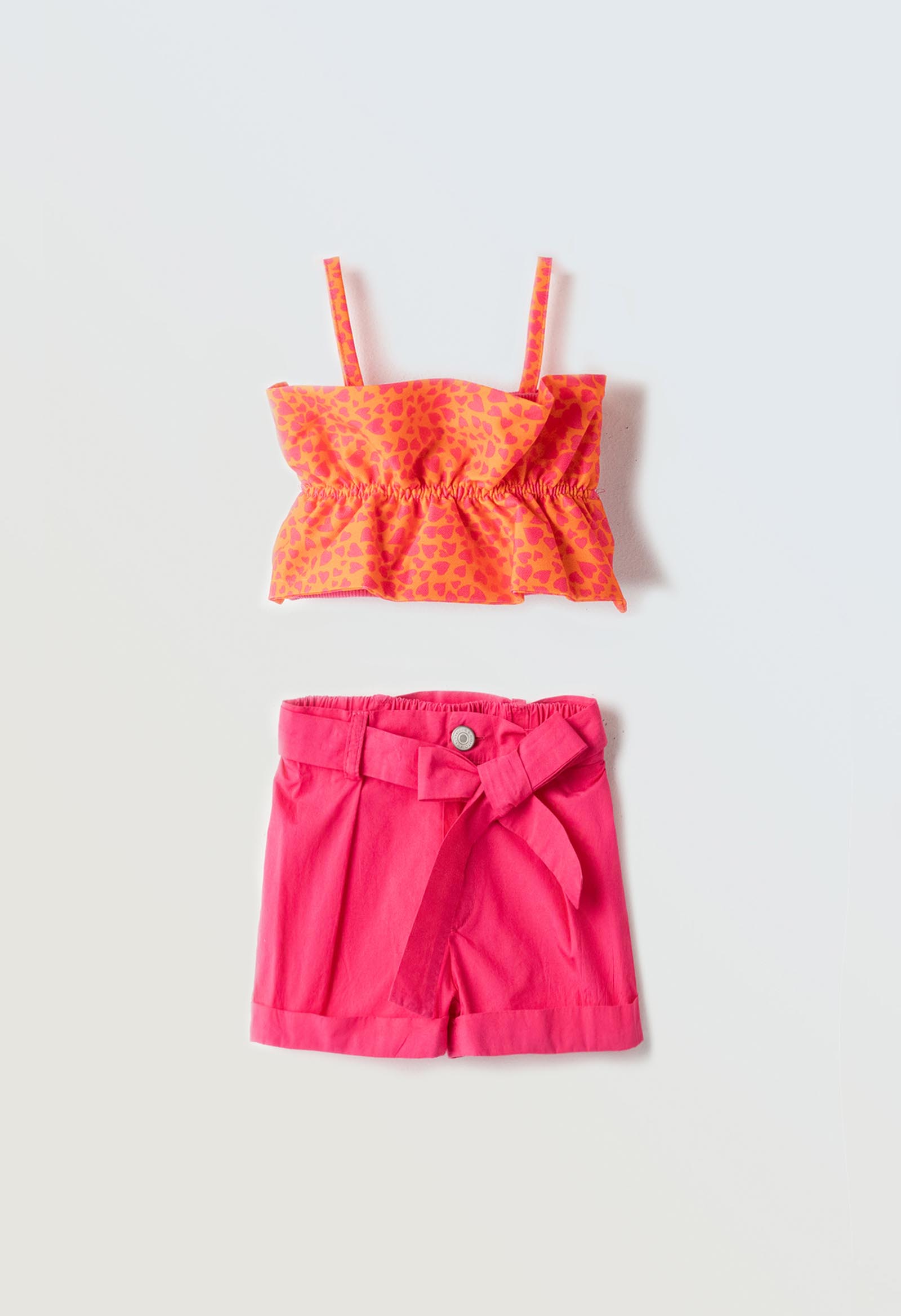 - Σετ με υφασμάτινο σορτς με λάστιχο και ζώνη στην μέση και crop top με τιράντες