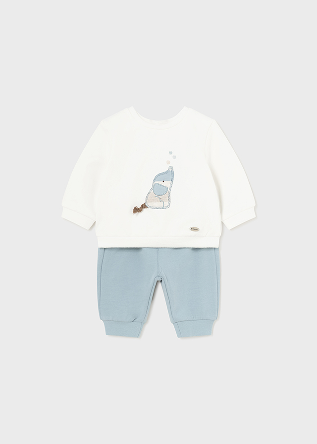 • 2 παντελόνια φόρμας με fleece επένδυση και 2 φούτερ μπλούζες με επένδυση fleece, κεντημένο σχέδιο στο μπροστά μέρος και κούμπωμα με τρούκς στην πλάτη