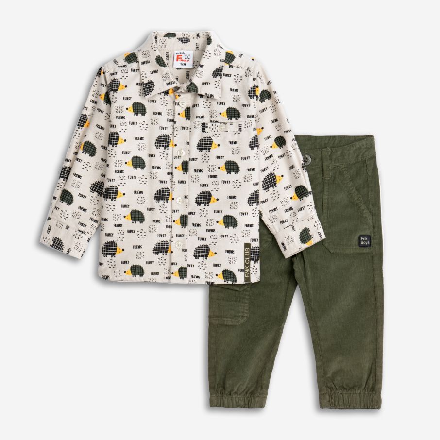 - Σετ 2 τεμαχίων με φανελένιο πουκάμισο με σχέδια και κοτλε cargo παντελόνι με αυξομείωση μέσης