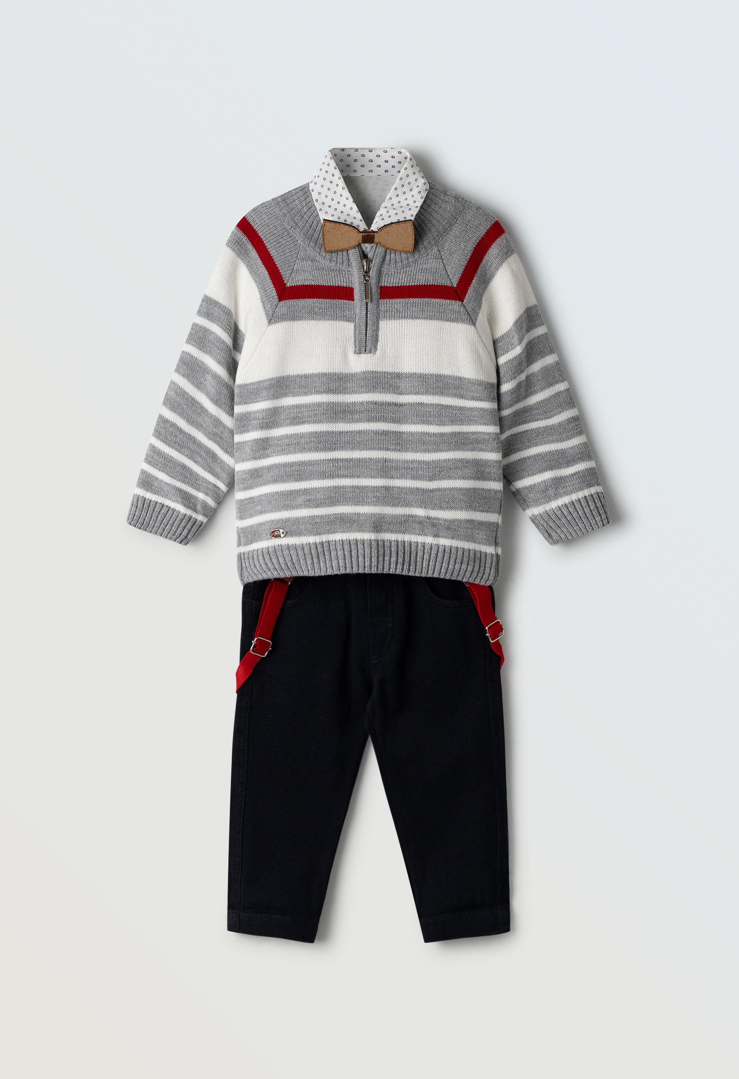 - Το σετ περιλαμβάνει παντελόνι με τιράντες (97% Βαμβάκι – 3% Ελαστάν)
