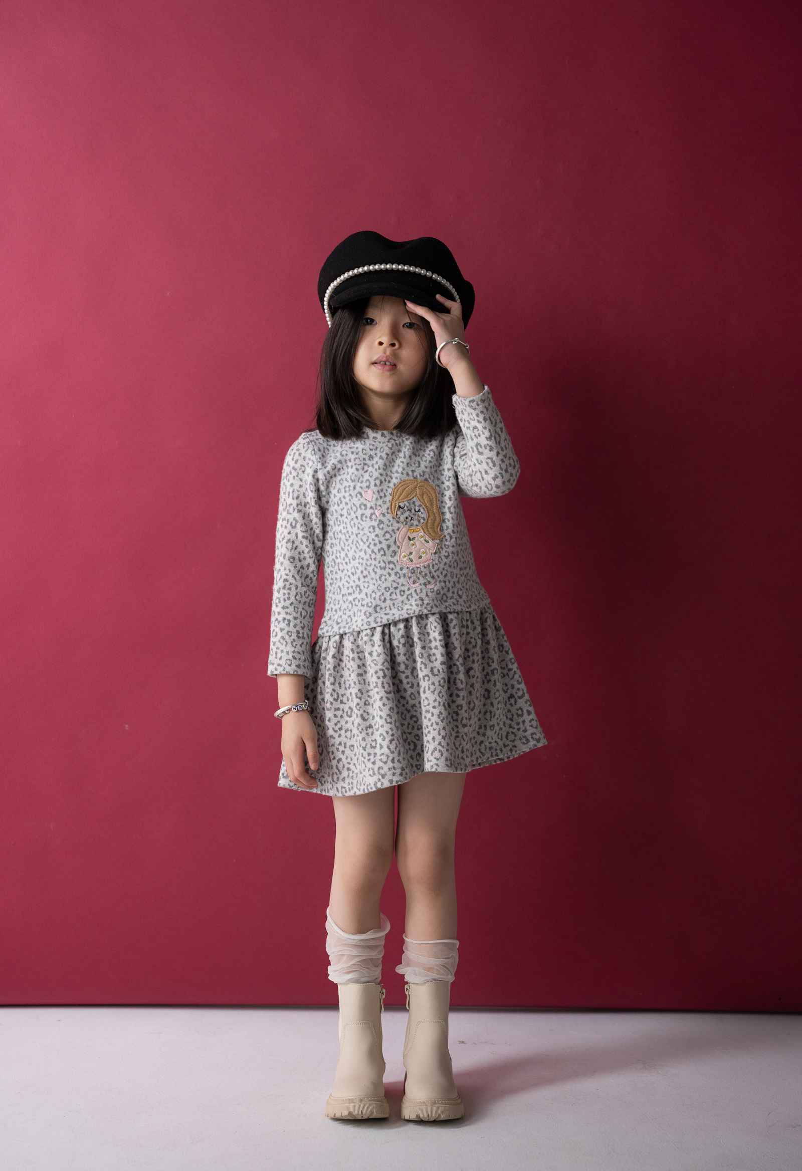 Φόρεμα λεοπάρ γκρι κορίτσι Εβίτα