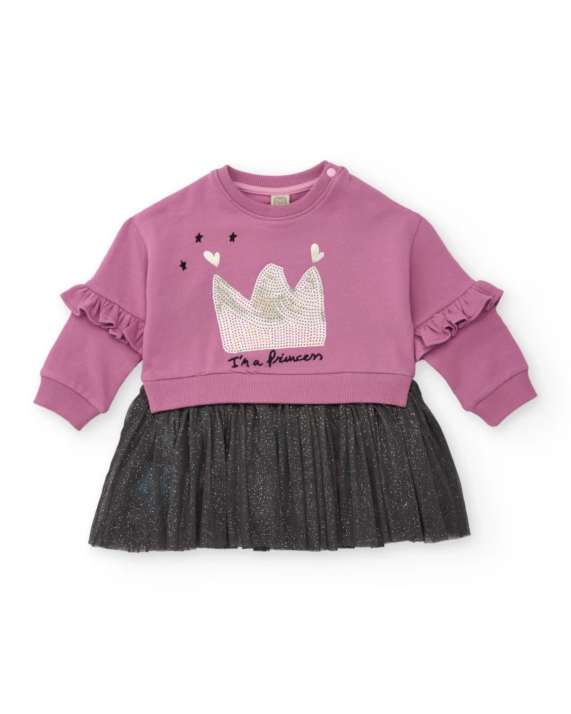 Φόρεμα φούτερ με τούλι κορίτσι μωβ Tuc tuc